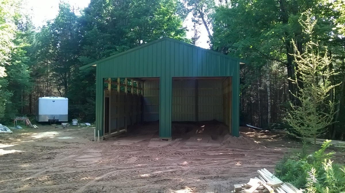 Republic, MI – Premium Pole Buildings & Storage Sheds is erecting a deluxe pole building in Republic. The owner of this property likes to fish and he has a really long driveway.