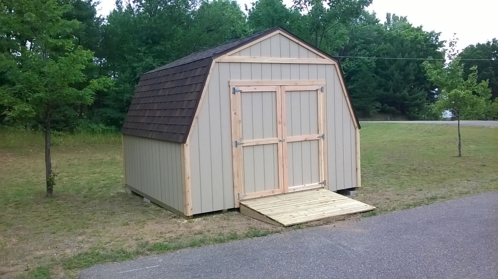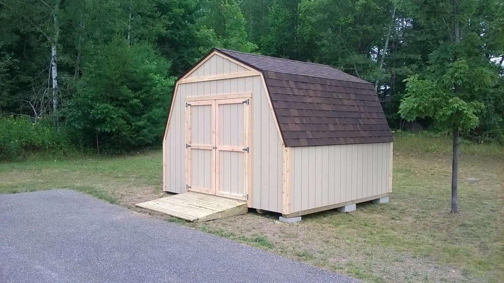 Ishpeming – Premium Pole Buildings & Storage Sheds finished working on this generous 12 foot by 12 foot Gambrel Storage Shed. This building is an example of one of the 11 Gambrel sizes Premium builds! This shed will be perfect for the lawn mower an Ishpeming church intends to store.
