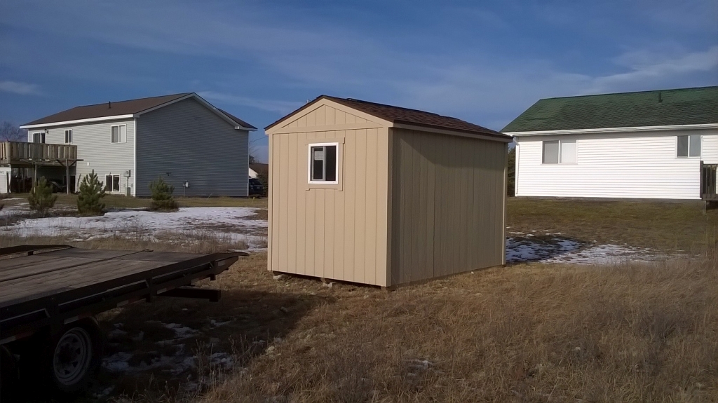 Gwinn, MI – Making another FREE delivery in the Upper Peninsula, Premium dropped of another Gable shed to a home owner in Gwinn this November. This customer needed a shed because he was retiring. Recently have bought a house in Gwinn, the client needed some extra space.